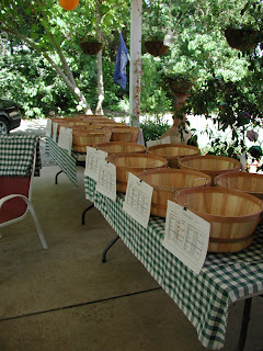 Many members came to help - they picked yellow beans, green beans, helped pull up ALL of the strawberry plants (that's a pretty big deal)...helped pack baskets, sort potatoes. A crazy time, to be sure. Lots of kids, lots of sweaty hard-working people. It's beautiful, I must tell you. But it never occurred to me to get the camera; I was just too busy. This time, I tried to get out earlier. I woke up at 5:30 and was in the garden at 6:30. It took me two hours and more to cut and bag all of the herb orders and flower orders: next week , I don't know - maybe I'll wake up at 5:00.